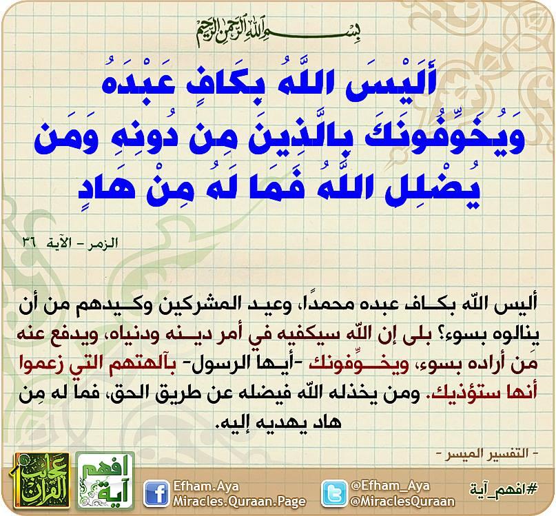 افهم آية On Twitter أ ليس الله بكاف عبده ويخوفونك بالذين من دونه ومن يضلل الله فما له من هاد افهم آية Http T Co Udesl3oeex