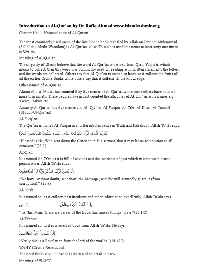 Introduction To The Quran Surah Quran