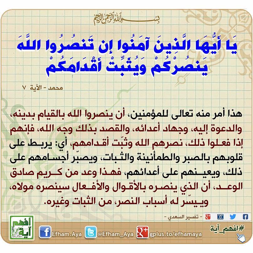 افهم آية Twitterissa يا أيها الذين آمنوا إن تنصروا الله ينصركم ويثب ت أقدامكم افهم آية قرآن Http T Co Hxl4i2cuvj
