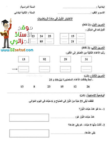 تقويم في الرياضيات للسنة الثانية ابتدائي