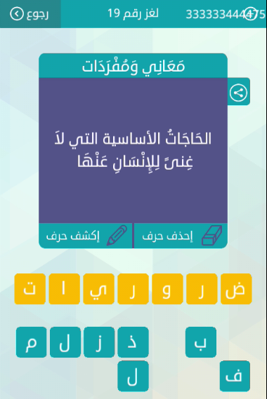 جواب معانى ومفردات الحاجات الاساسية التى لا غنى للانسان عنها لغز رقم 19 من لعبة وصلة للمجموعة الثا صقور الإبدآع