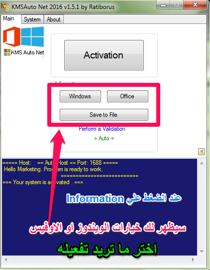 برنامج تفعيل ويندوز واوفيس بضغطة واحدة مجانا Kms Offline By Ratiborus