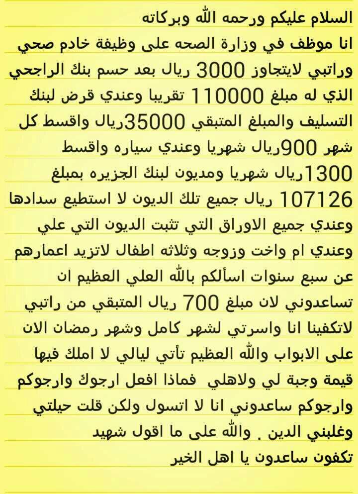 Ibrahim On Twitter السلام عليكم يا شيخ عادل ارجوك ساعدني بما تستطيع فأنا مديون وعجزت عن السداد وقد حل اجله ساعدني جزاك الله الف خير Adelalibinali Https T Co Oltkez7o3k