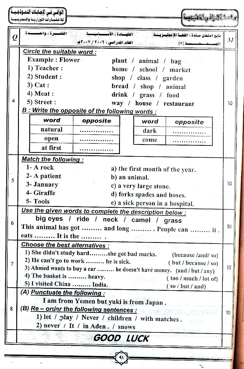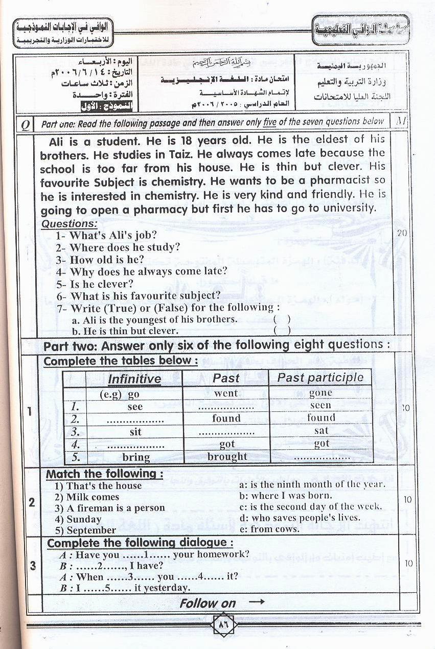 Hakim Translation Office Taiz Yemen حكيم مكتب ترجمة معتمدة تعز اليمن نماذج امتحانات الصف التاسع الأساسي