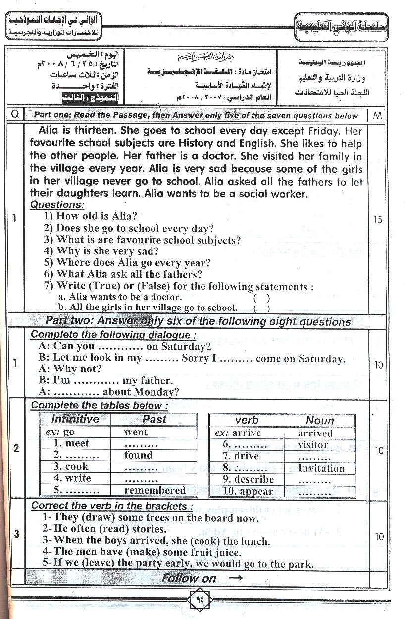 الاختبارات النهائية نماذج اختبارات الصف التاسع اليمن 2020 Pdf