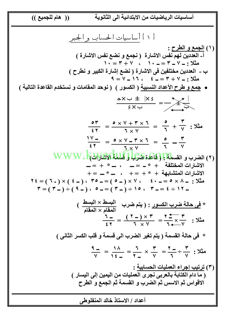 أساسيات الرياضيات من الابتدائية الى الثانوية مستر خالد المنفلوطى