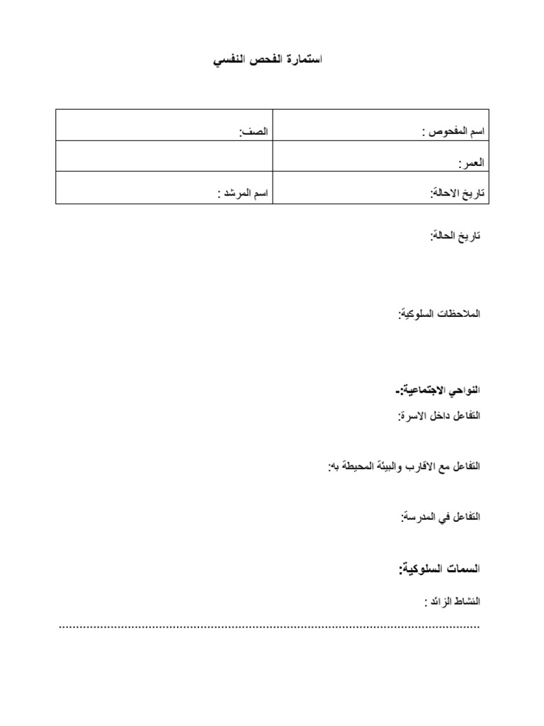 استمارة الفحص النفسي