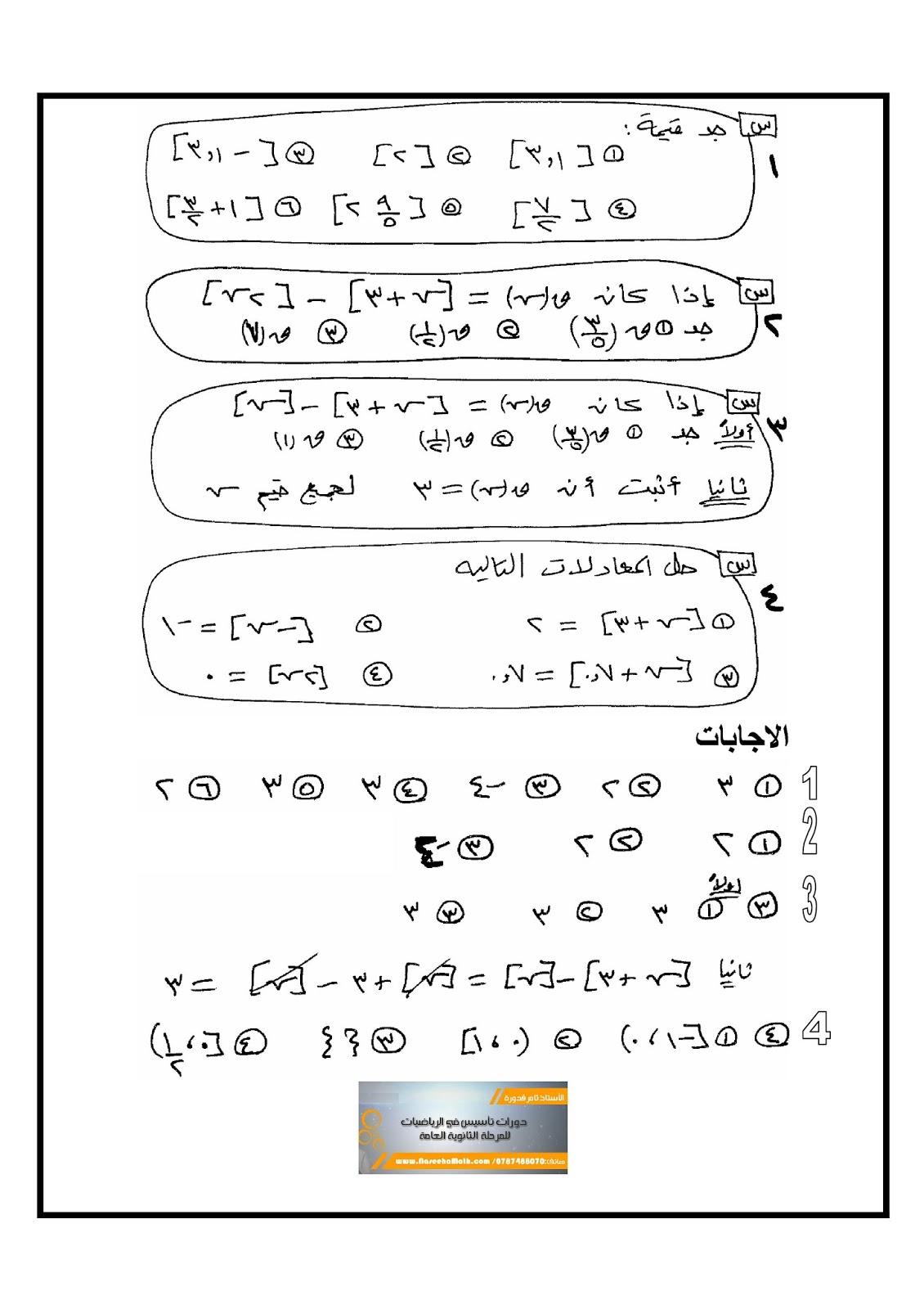 رياضيات 2019 ورقة عمل للصف العاشر درس اقتران اكبر عدد صحيح فيسبوك