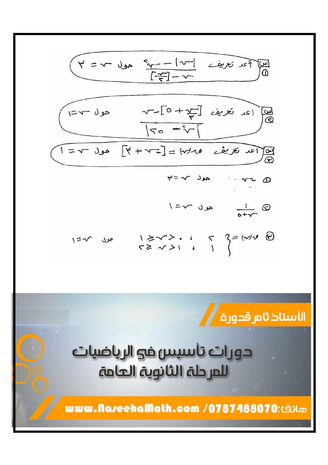 دالة أكبر عدد صحيح الحبشي للرياضيات دوال خاصة رياضيات 3 ثاني ثانوي المنهج السعودي