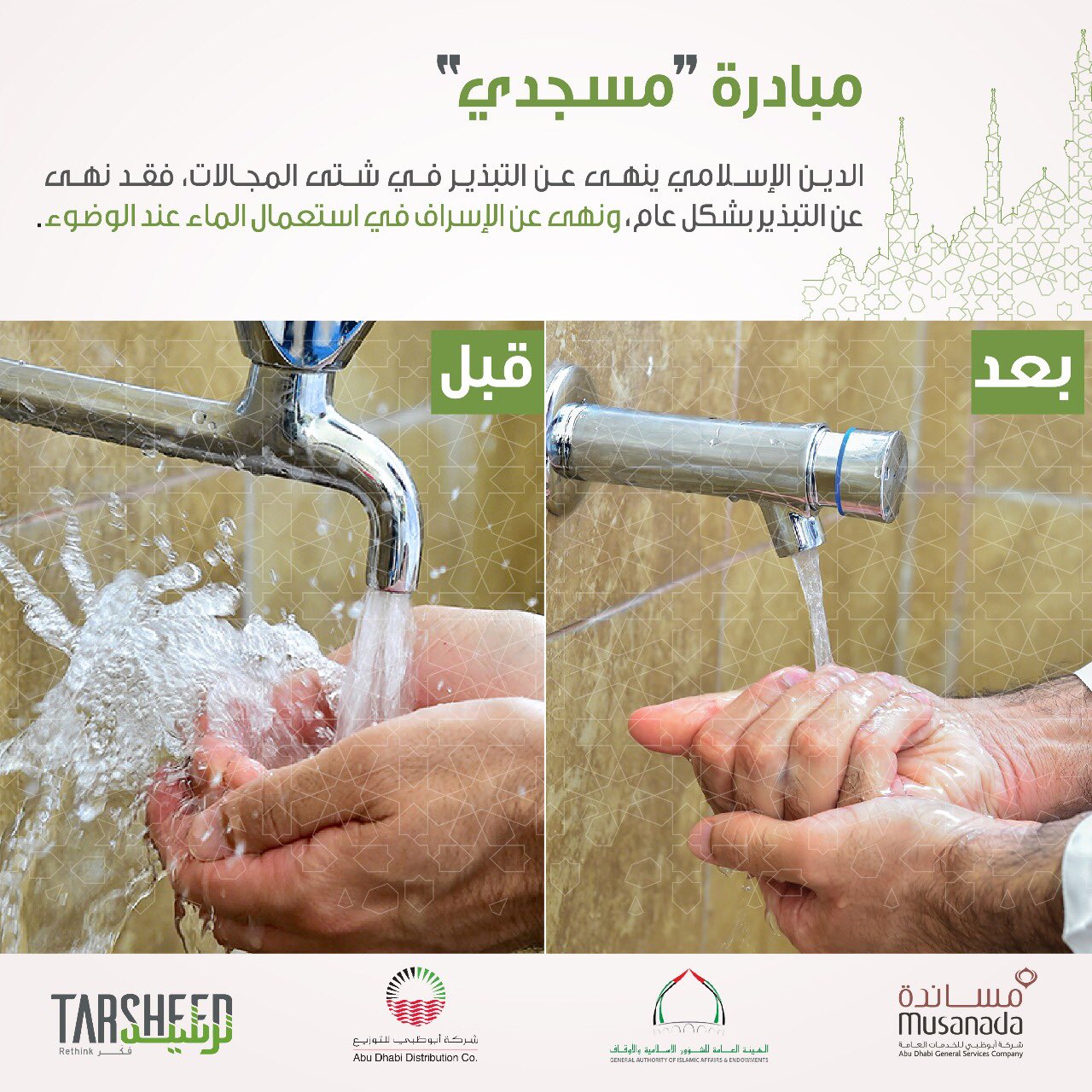 شركة أبوظبي للتوزيع Auf Twitter مبادرة مسجدي الإسلام ينهى عن التبذير في شتى المجالات فقد نهي عن التبذير بشكل عام ونهى عن الإسراف في استعمال الماء عند الوضوء Masjidi Initiative Islamic Religion Forbids Muslims