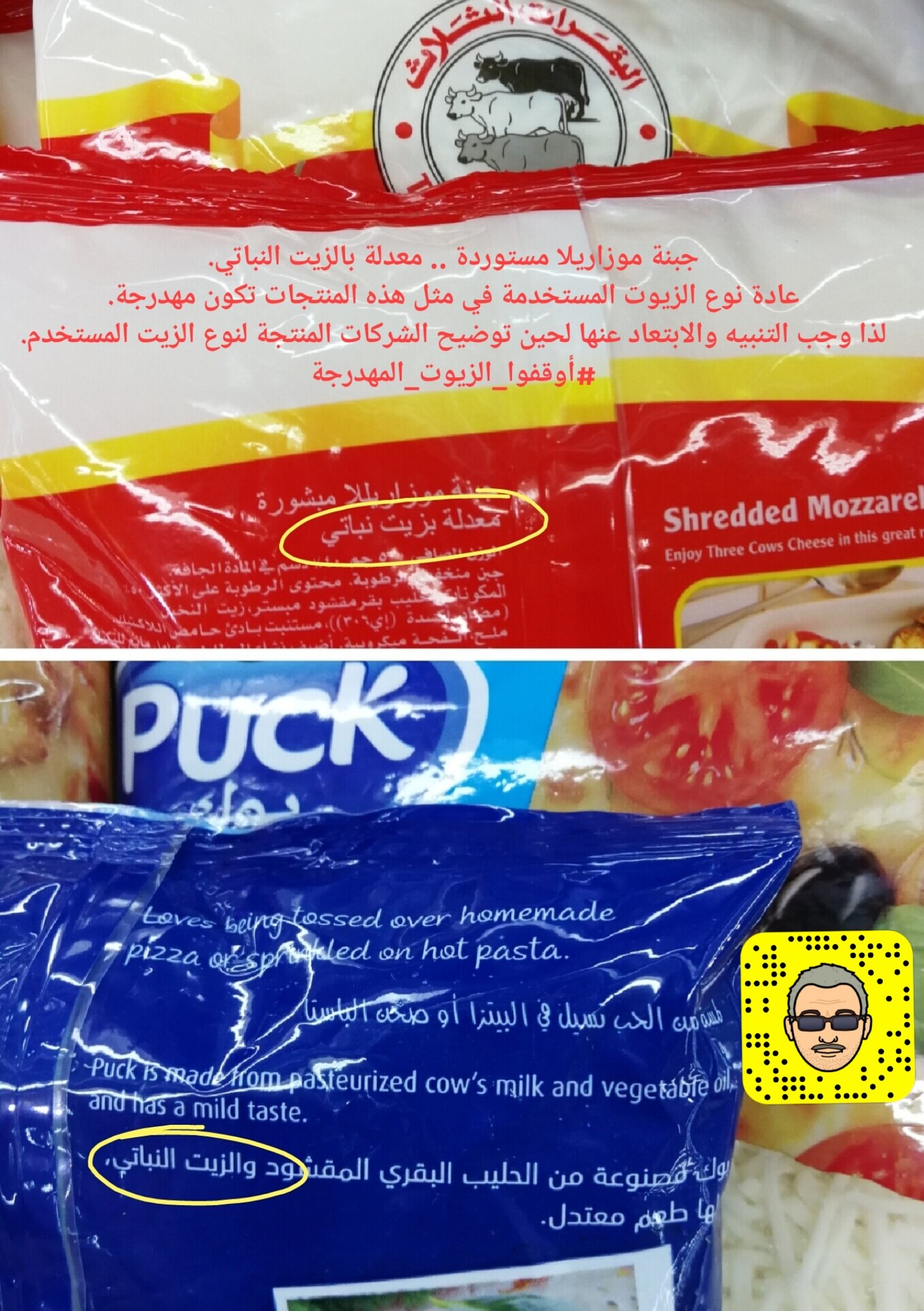 مخاطر المهدرجة Twitterissa أجبان موزاريلا مستورد معدل بالزيت النباتي ينصح بالابتعاد عنها لحين تأكيد الشركات كون الزيوت غير مهدرجة أوقفوا الزيوت المهدرجة البدائل المقترحة منتجات وطنية من حليب الأبقار الطبيعي تستحق الإضافة إلى قائمة منتجات