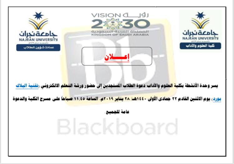 تعريف مستجدات جامعة نجران بـ البلاك بورد