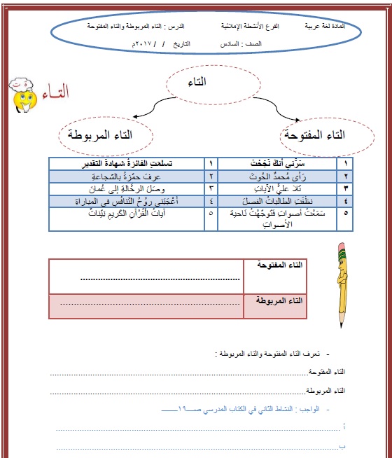 التاء المفتوحة والتاء المربوطة للصف السادس الأساسي الفصل الثاني 2017