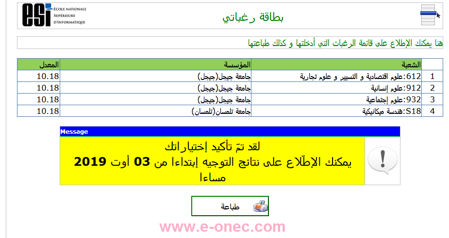 موقع التسجيلات الجامعية لبكالوريا Orientation Esi 2020