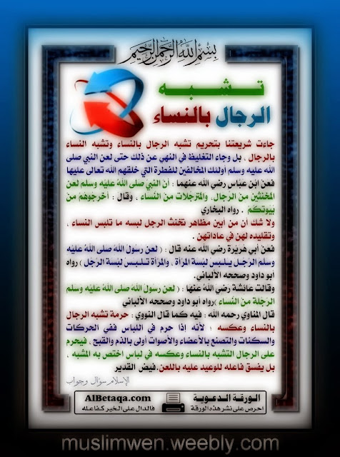 تشبه الرجال بالنساء موقع البطاقة الدعوي