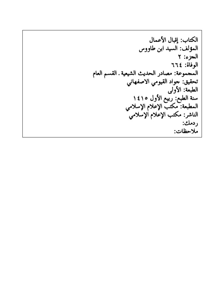 إقبال الأعمال السيد ابن طاووس جلد 2