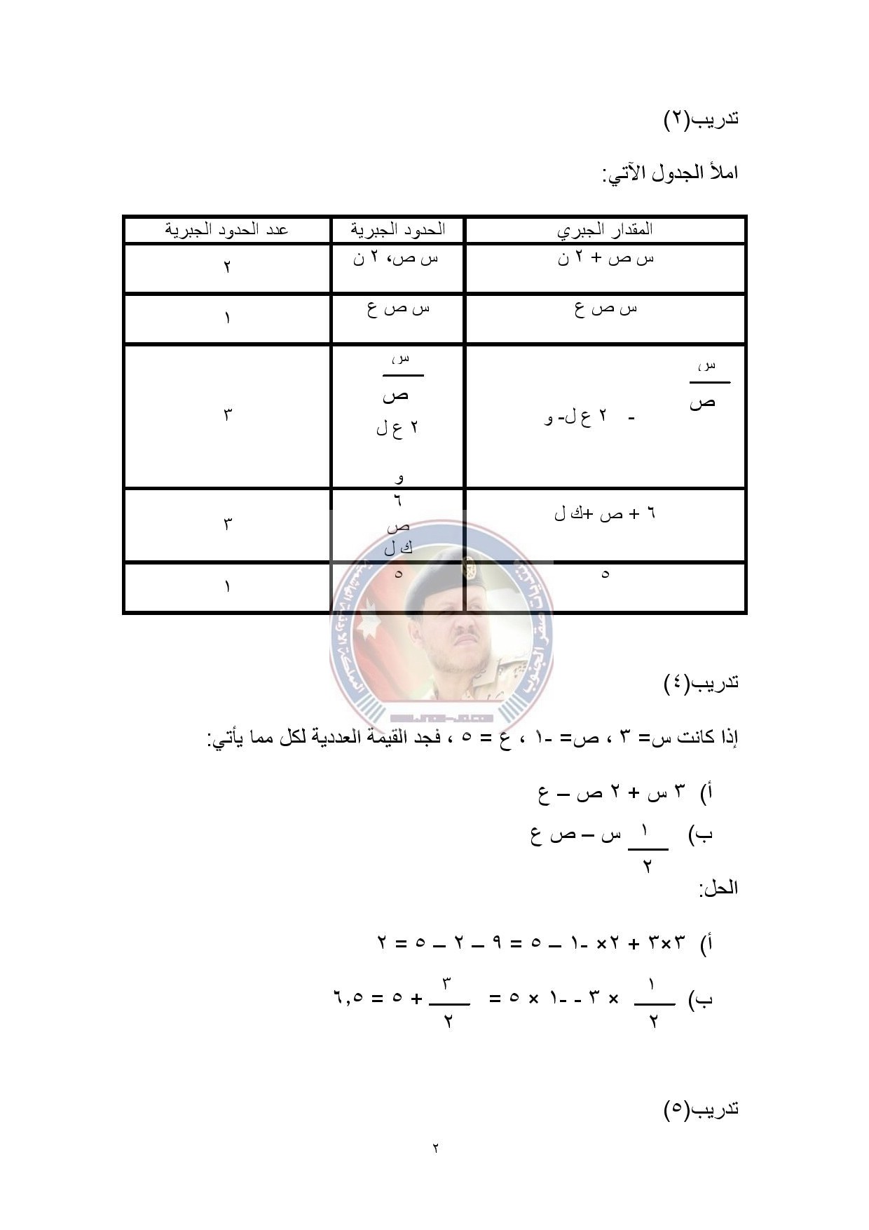 رياضيات ـدرس الجبر ـ الصف السابع
