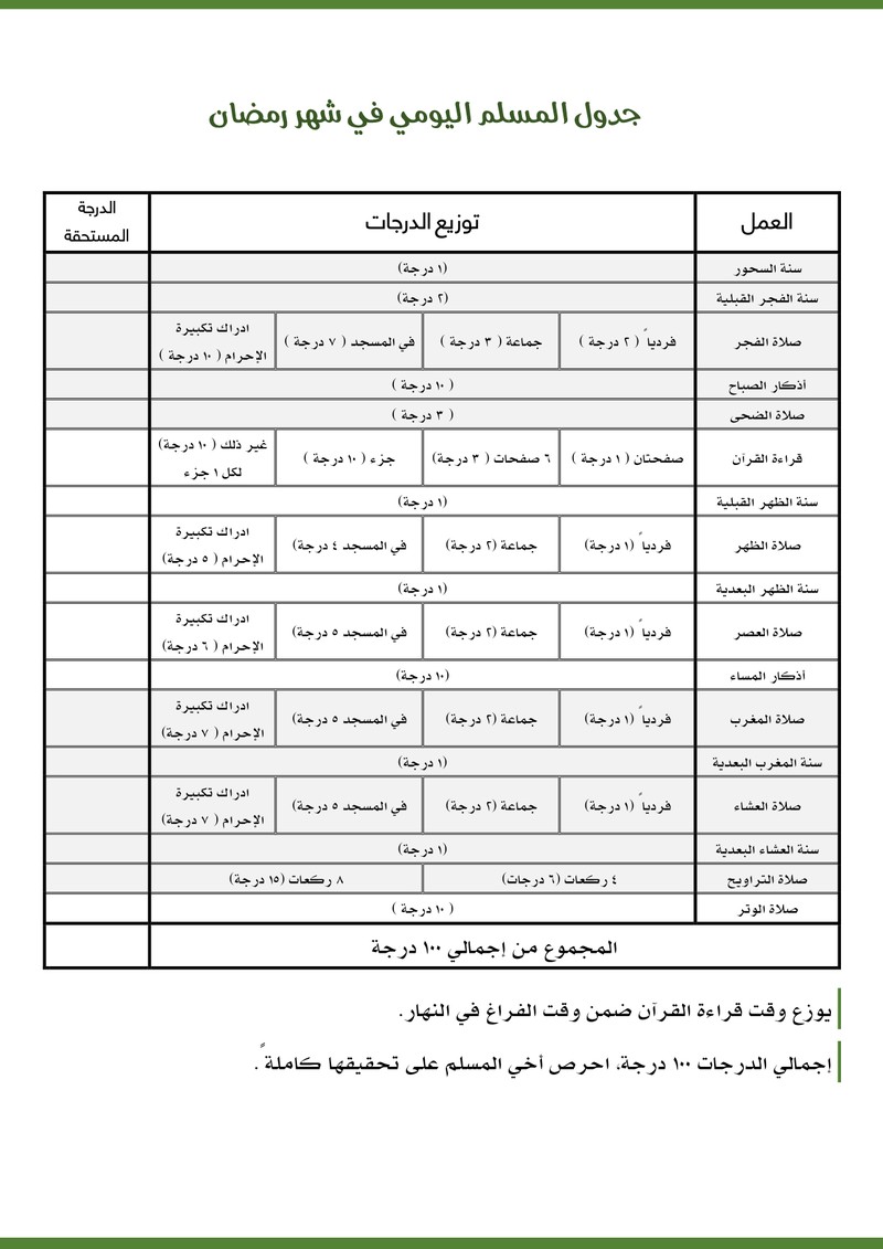 جدول المسلم اليومي في رمضان صور