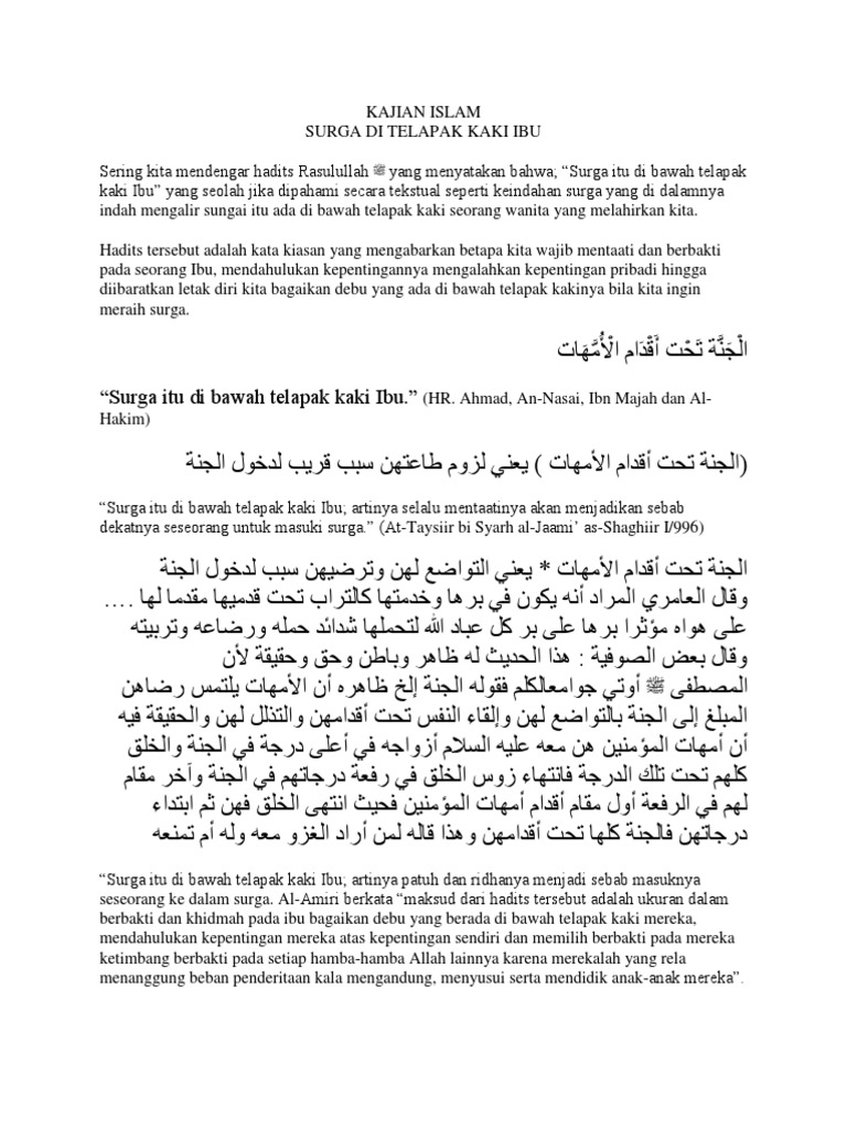 الجنة تحت أقدام الأمهات Surga Itu Dibawah Telapak Kaki Para Ibu Assđ Yel ђakyeyem Kun