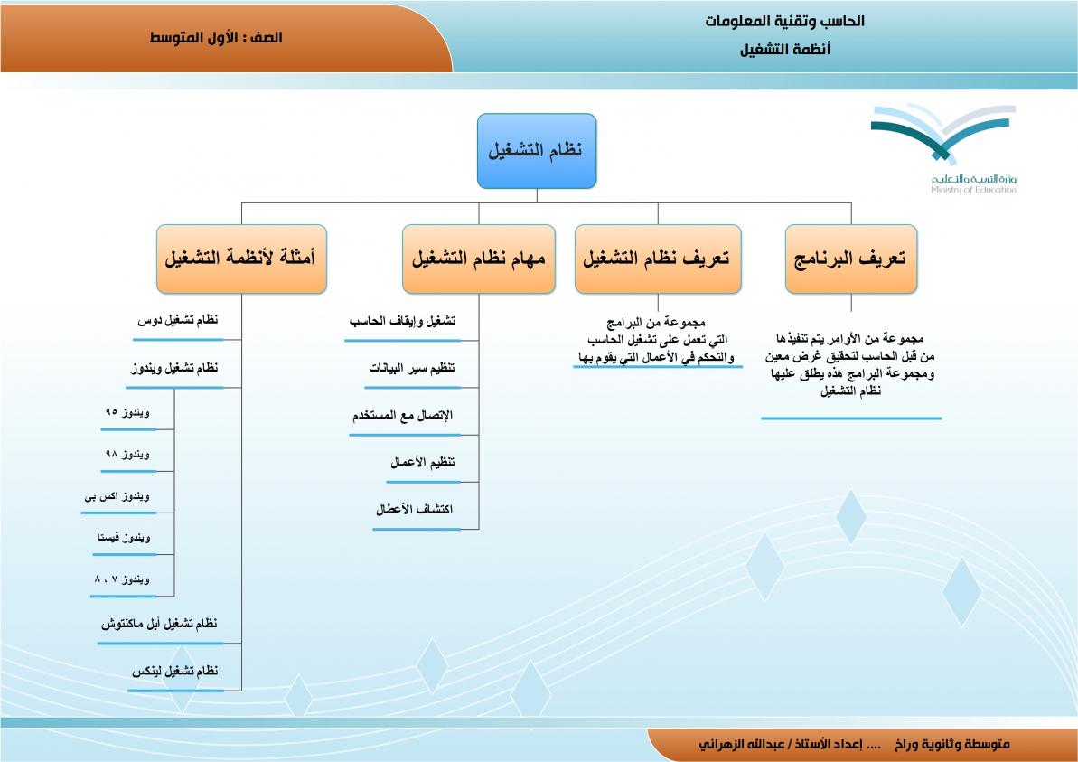 خرائط ذهنية لمادة الحاسب للصف الأول متوسط الفصل الثاني كامل المنهج منتدى التعليم توزيع وتحضير المواد الدراسية
