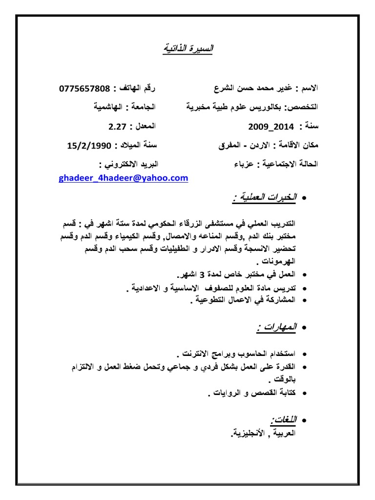 السيرة الذاتية Docx