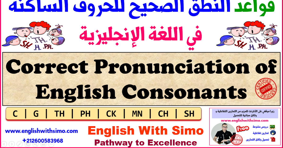 الدرس الثالث من دروس المبتدئين قواعد النطق الصحيح للحروف الساكنة في اللغة الإنجليزية English Consonants Pronunciation English With Simo