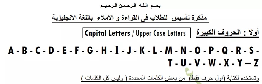 القرائية فى اللغة الانجليزية English تأسيس الإملاء والقراءة والكتابة
