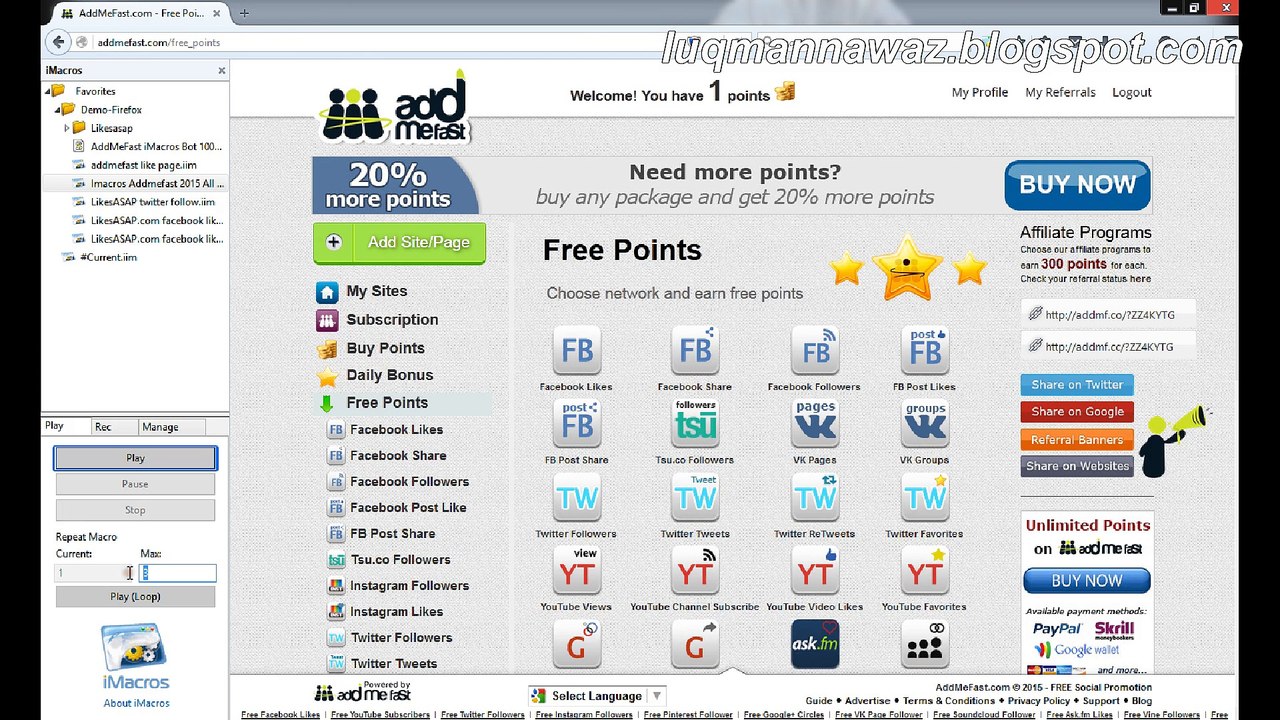 Undetected Addmefast Bot Download Spotlight Unlimited Addmefast Points Auto Clicker Imacro Script Bot Free Facebook Likes Video Game Jobs Youtube