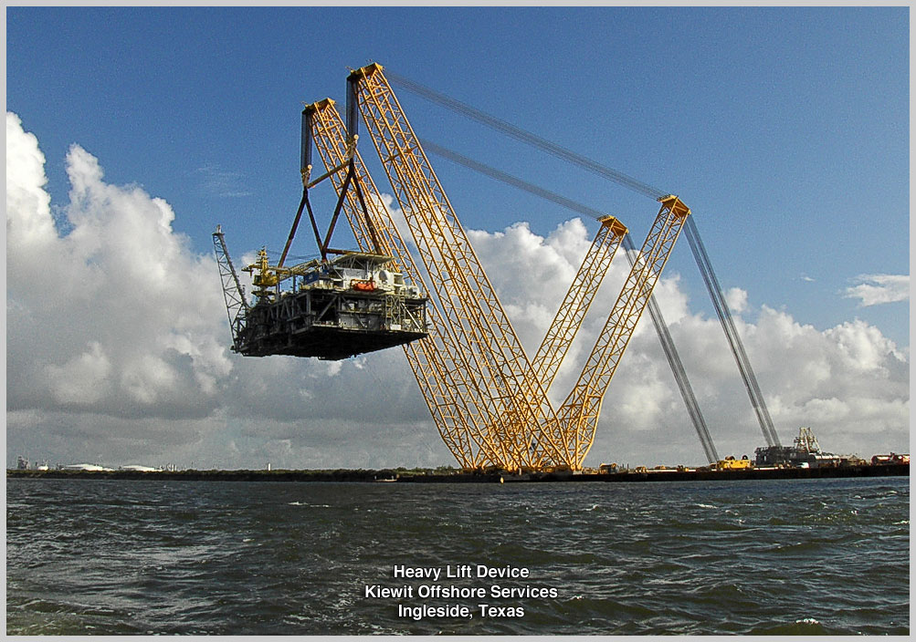 13 000 Ton Heavy Lifting Device Hld Installs A X Band Radar Dish Onto A Twin Hulled Semi Submersible Drilling Rig At Kiewit Yard In Ingleside Texas Ca 2002 800 1067 Machineporn